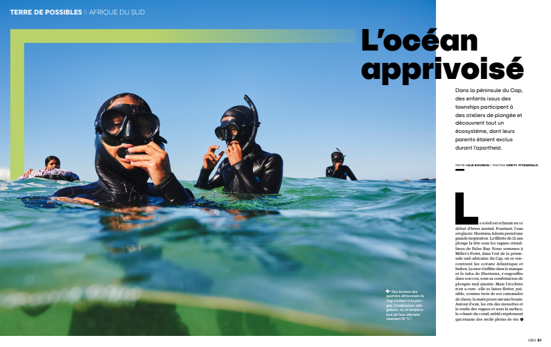 Dans la péninsule du Cap, des enfants issus des townships participent à des ateliers de plongée et découvrent tout un écosystème, dont leurs parents étaient exclus durant l’apartheid.